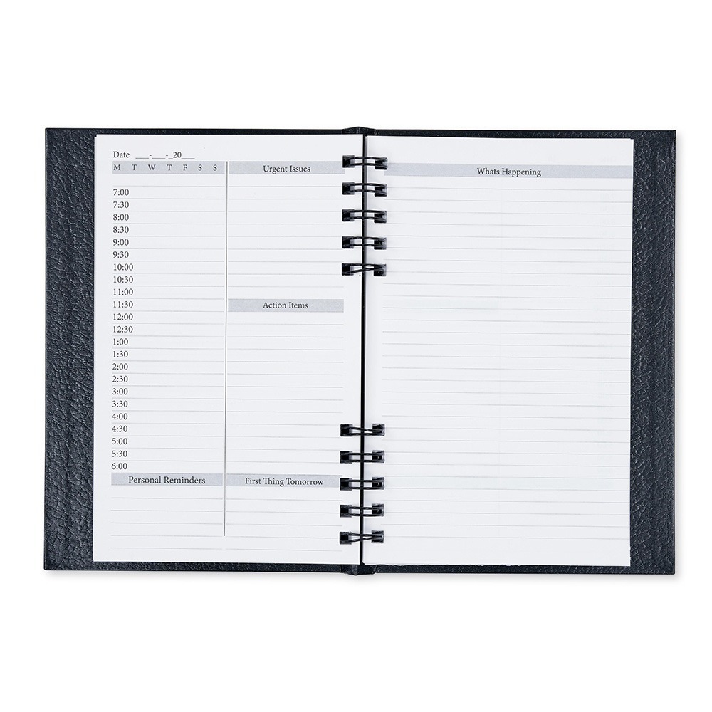 - Lay-Flat Metal Coil Binding – Strong metal coil binding allows the journal to open fully and lay flat, making it easy to record meetings, track projects, and plan your day efficiently.